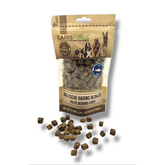 Canis Purus Fish Cubes – 100% natural fish snack made from wild herring from the Baltic Sea, perfect as a fragrant reward or training treat