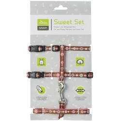 Cet ensemble harnais et laisse pour chiots et chats est léger comme une plume et s'adapte parfaitement au corps de votre animal. Les couleurs gaies et les motifs amusants attireront certainement l'attention. La combinaison astucieuse et bien pensée d'un harnais et d'une laisse protège votre chiot, p..